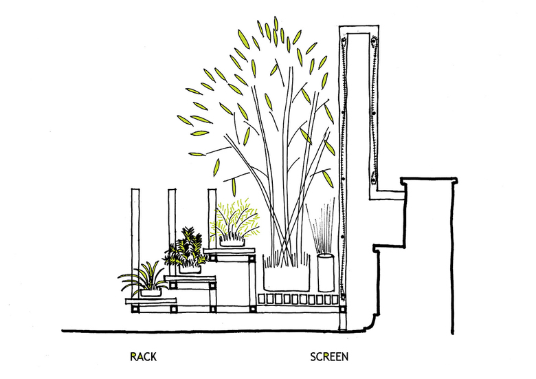 The choice of Stainless Steel, Wooden slats and Bamboo chicks as the core architectural elements became obvious as we set out a brief to have a terrace garden that takes less time to maintain and gives more time to entertain self and others. The amalgamation of these urbane and rustic materials create a space that filters the sunlight through porous Roof; provides privacy through Screens; frames scenic vistas of the glistening river, open fields and sprawling city through raised Deck; and ensures healthy growth of plants through elevated Racks for the pots. All this while one sits down and takes in the fresh breeze from Arabian Sea and River Tapi.