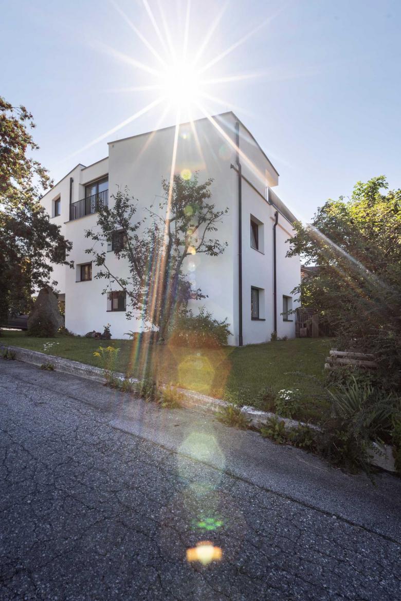 Bei der Aufstockung in Sistrans war das Hauptaugenmerk darauf gerichtet, die auf der Hinterseite des Grundstücks liegende Straße und die dadurch entstehende Lärmquelle intelligent im Bauprozess zu berücksichtigen. Des weiteren war es ein besonderer Wunsch der Bauherren eine großzügige Terrassenfläche zu integrieren, und das Wohnen im Einklang mit der Natur zu fördern.