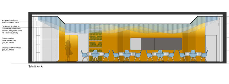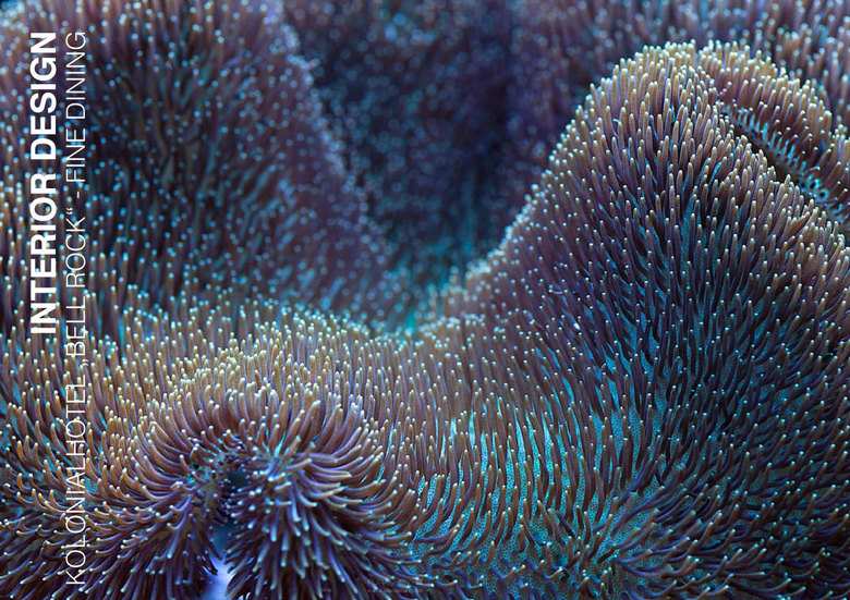 Fine Dining Seafood-Restaurant, gestaltet als Unterwasserrestaurant mit gewellter Lichtdecke aus Acrylstäben zur Simulation von Lichtreflexen im Meer.