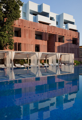 The 36 remaining rooms are spread over contemporary buildings that become framing elements to the site and strongly respond to the context. Age-old materials and skills are manifested as a modern and understated graphic form derived from multiple functional and programmatic parameters. These new buildings are inserted into the site in a manner that accentuates the spatial and formal relationship among the old buildings and the Fort, creating a dialogue betweenthe old and the new.