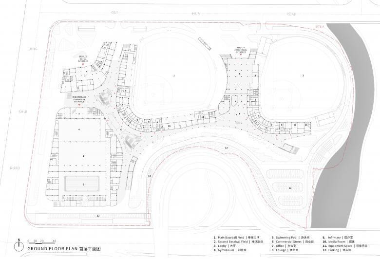 The project is located at the junction of Keqiao District and Jinghu New District in Shaoxing, which is an important node and supporting facility in the future baseball community planned for construction. In order to build a sports community full of vitality, the design uses multiple urban culture superposition compound functions, starting from shaping culture, scientific planning and comprehensive utilization, and gives full play to the public service nature of sports buildings in the sports community.