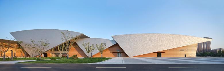 The north facade is the most important image display surface facing the city. The design incorporates the concept of "the surging tides of Bohai" by arranging and juxtaposing multiple fan-shaped "shells", a hint of marine culture and aquatic symbolism. In shaping an iconic image, it offers a powerful response to urban culture.