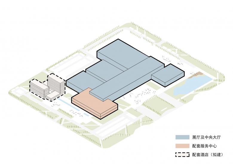 Public square, recreation areas, landscape parks, and open-air markets, among others, are arranged around the exhibition building. These places provide citizens with a multi-functional urban leisure space that not only facilitate efficient exhibition and commercial activities, but also serve citizens' recreational needs.