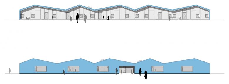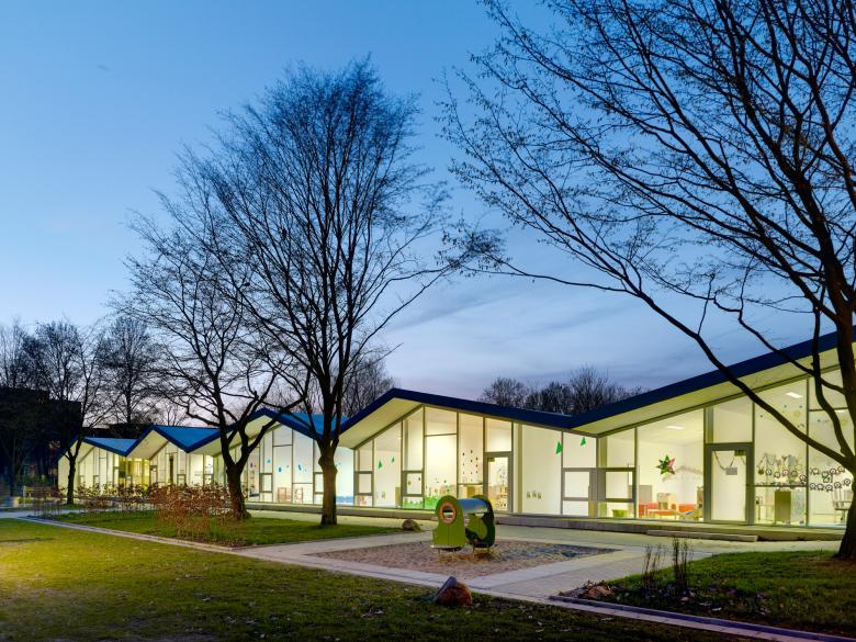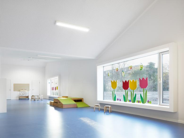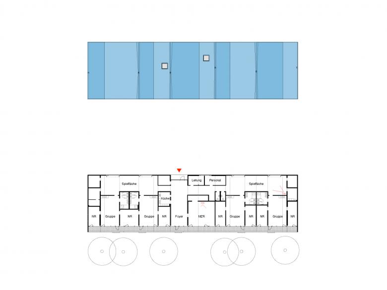 Das Berliner Viertel in Monheim befindet sich im Umbruch. Mit einem Bündel von sozialen und baulichen Maßnahmen will die Stadt Monheim dem einstigen Vorzeigeprojekt nordrheinwestfälischer Großsiedlungsbauten neue Impulse verleihen. Der Neubau der Blauen Kita markiert einen solchen Ort des Wandels im Grau der Peripherie. Durch einen aufs wesentliche reduzierten Entwurf konnte statt der ursprünglich geplanten Container ein sehr kostengünstiges, aber dennoch attraktives