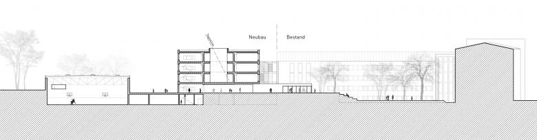 Der neue Haupteingang für die Grundschule und die Sporthalle erhält somit eine neue eindeutige Adresse, die die Orientierung und Sicherheitsbelange der Schüler und Lehrer berücksichtigt.