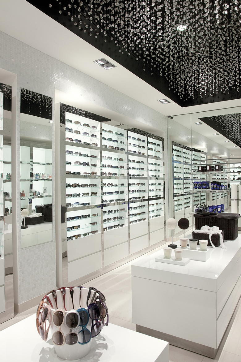 Consistent with the location, the interior design conveys a classy atmosphere and an upscale feeling. Exclusive materials such as bisazza mosaics, marble columns, suspended elements like glass beads, polished high-grade steel or black steel, high-gloss surfaces and walnut wood reflect the high standards the company stands for. The flooring consists of cream coloured tiles; high quality carpets emphasize special areas. The concept provides a pleasant sense of lightness without neglecting the traditional appearance of The Collective. The entire two-level store is structured clearly to facilitate orientation. With the new store design for The Collective, Blocher Blocher India did not only unite all different kinds of fashion and brands but also created an impressive interplay of modern West and Indian way of life.