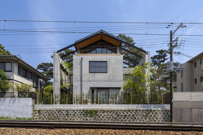 Opposite the riverbank lies the single-track railway line of the Hankyu Koyo Line, where trains become part of the scenery. With no obstructions to the east or west, it offers a splendid location.
