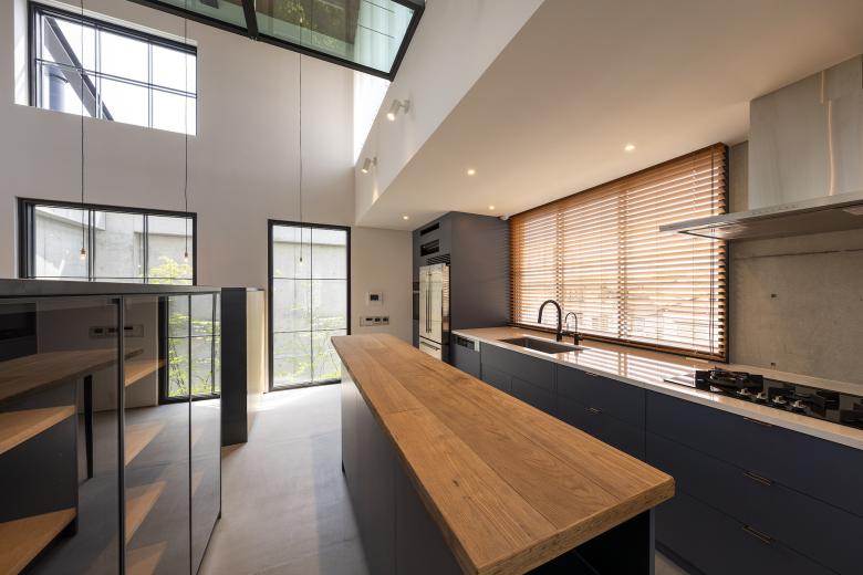 The owner requested a space with a solid structure and a sense of materiality, avoiding an overly modern aesthetic.The ground floor entrance hall doubles as a kitchen café for the lady of the house, who has many friends.