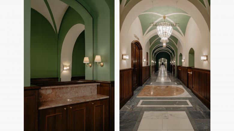 BWM haben nun die großteils denkmalgeschützten Räumlichkeiten revitalisiert – „Uns ging es darum, die ursprüngliche Substanz wieder hervorzuheben und an die Intensität der Gestaltung Joseph Urbans anzuschliessen. Wie bei all unseren planerischen Gedanken geht auch diesem Projekt eine genaue historische Analyse voraus“, führt Erich Bernard, BWM Designers & Architects die Herangehensweise aus. Der Wiener Rathauskeller ist ein komplexes Konstrukt, das trotz seiner sehr verschiedenen Säle auch viele Gemeinsamkeiten in der Gestaltung aufweist. BMW haben diese Elemente – konkret Gewölbe, Lambris, Luster, Spaliere, Malereien, Fenster und das Wappen der Stadt Wien – im Zuge der Revitalisierung nun wieder entsprechend betont.