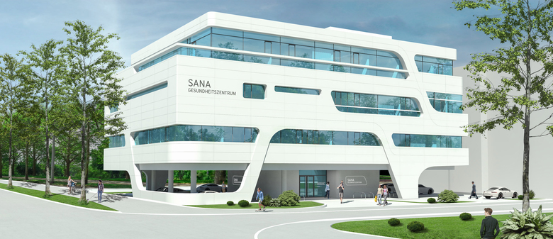Modernes Medizinzentrum mit cleanem Chic - Mit der Planung und Realisierung eines modernen Medizinzentrums in Heilbronn verwirklicht 3deluxe derzeit das erste Projekt im Bereich Healthcare. Auf 1600 Quadratmetern entsteht ein dreigeschossiger Bau mit Praxiseinheiten, OP-Räumen und Patientenzimmern zur stationären Aufnahme. Das dynamisch-cleane Erscheinungsbild des Gebäudes mit seinen bläulichen Glasflächen vermittelt Transparenz und Eleganz. Neben der architektonischen Umsetzung ist 3deluxe auch mit dem Interior Design beauftragt. Das Wohlbefinden der Patienten steht hier klar im Vordergrund.