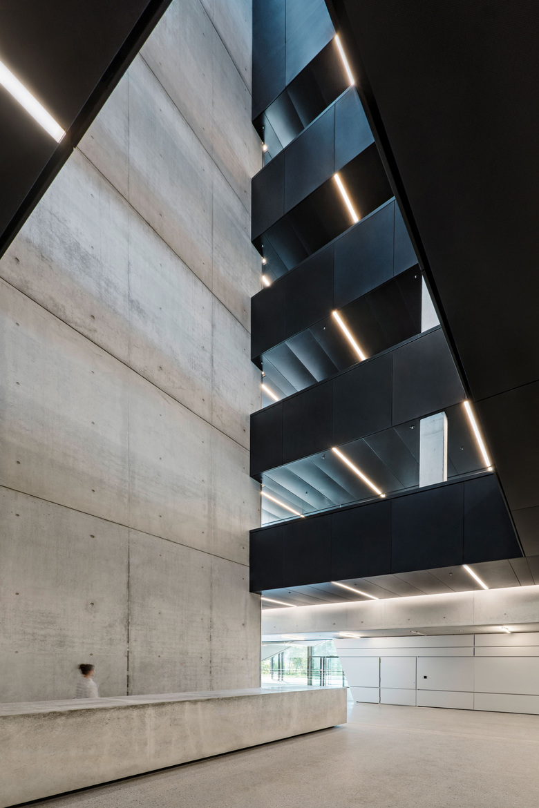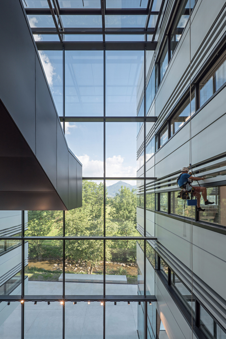 Der Bau unterstreicht Eigenschaften wie Präzision, Innovation und technische Avanciertheit, für die das Vorarlberger Unternehmen steht, gleichzeitig rücken die MitarbeiterInnen, die hier arbeiten, in den Mittelpunkt.