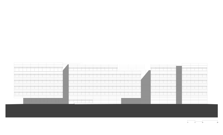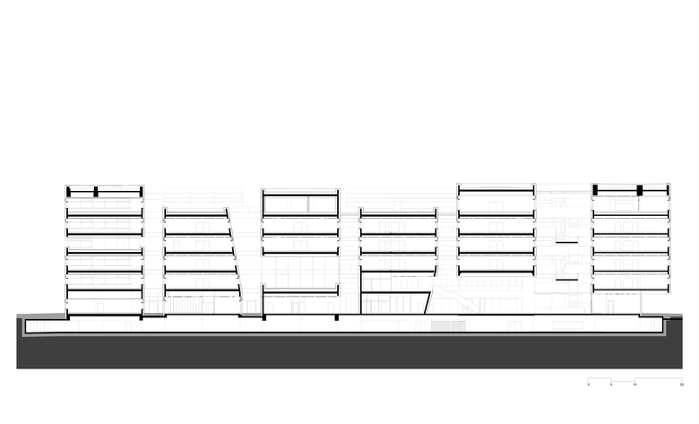Das führende Technologieunternehmen Doppelmayr ist traditionell in Wolfurt verwurzelt und seit jeher in die dörfliche Struktur des Ortsteils Rickenbach eingebettet. Die Neuinterpretation ebenjener städtebaulichen Situation am neuen Standort stellt das Leitmotiv des Neubaus dar. Entlang eines inneren Rückgrates, an dem alle Gemeinschaftsflächen situiert sind, gruppieren sich in den Einzelhäusern unterschiedlich große Bürobereiche.