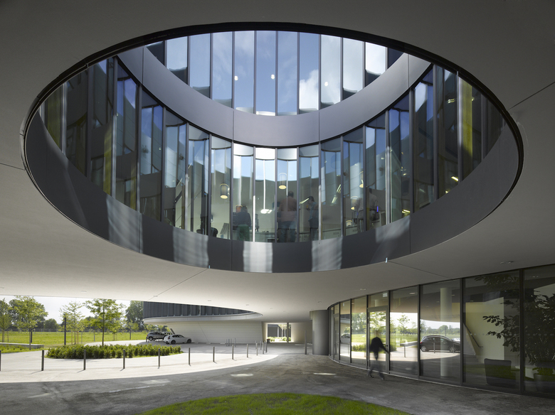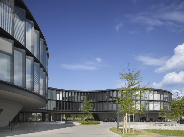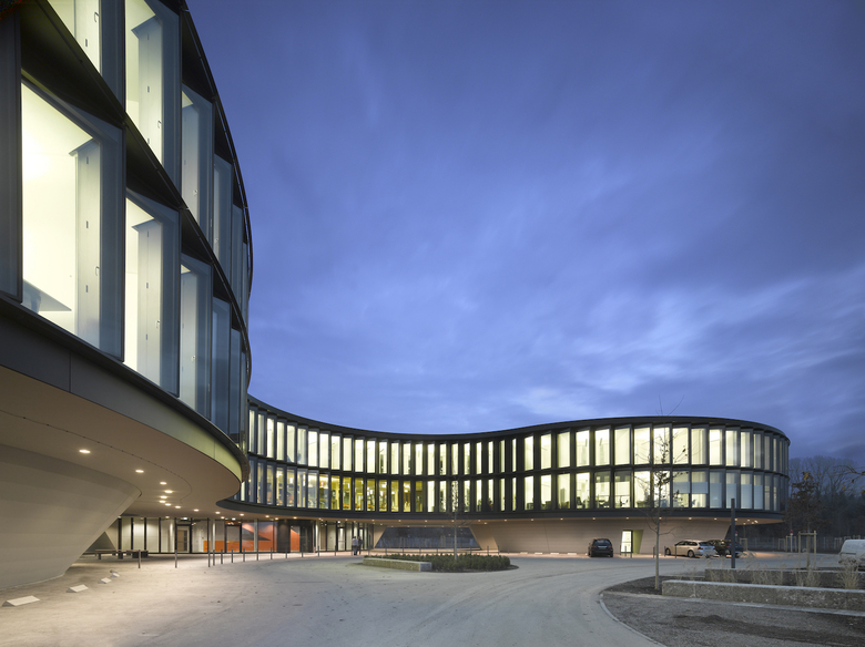 Die Erweiterung der Hauptverwaltung der Europäischen Südsternwarte (ESO) respektiert durch die Architektursprache sowohl den Grüngürtel südlich des Forschungscampus als auch den extrovertierten Charakter des bestehenden Hauptgebäudes. In Anlehnung an dessen Formensprache wurde ein auf Kreissegmenten basierender Neubau mit Büros, Seminarräumen, einem Hörsaal und einem Konferenzraum entwickelt, der stützenfrei über der Landschaft zu schweben scheint. In unmittelbarer Nachbarschaft befindet sich ist das kreisrunde, zweigeschossige Technikgebäude mit der großen Montagehalle.