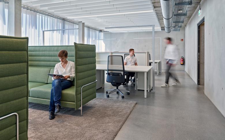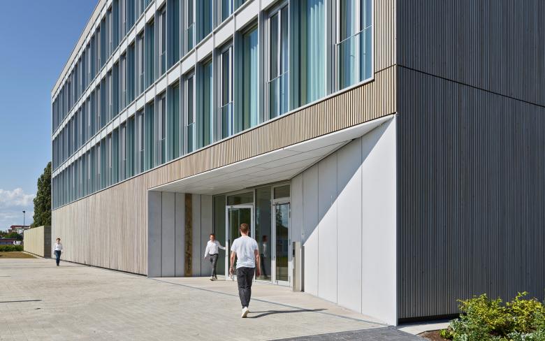 Gebäude- und Energiekonzept wurden integral unter Berücksichtigung einer guten Energieeffizienz, einer hohen Arbeitsplatzqualität und einem innovativen Laborkonzept geplant. Eine Photovoltaik-Anlage auf dem Dach der Bürospange nutzt so viel regenerative Energie, dass die Primärenergieanforderungen nach EnEV um rund 70% unterschritten werden.