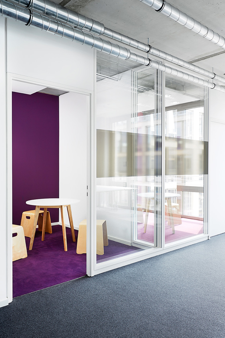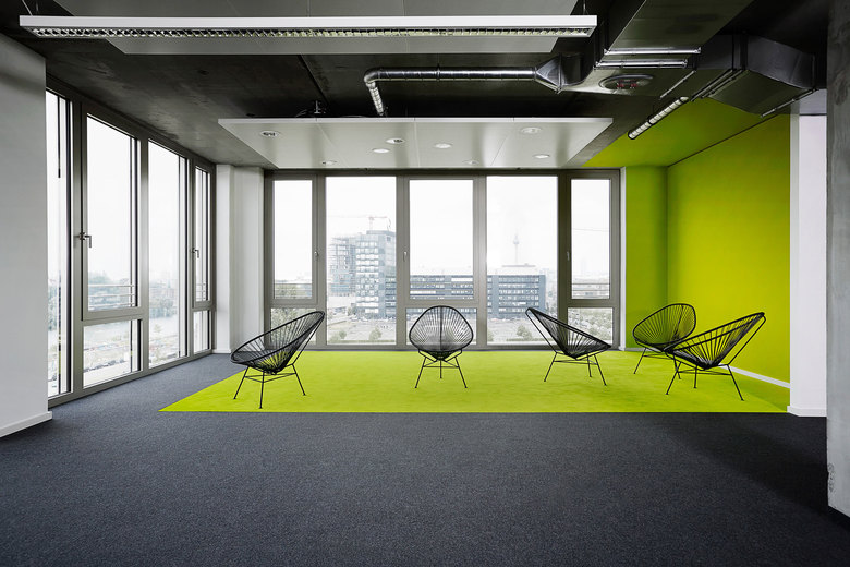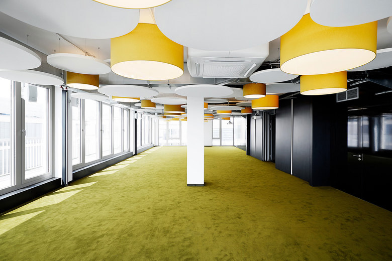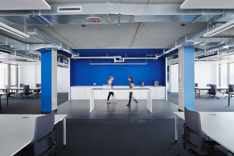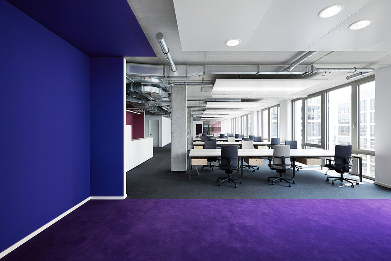 Für die Umgestaltung der Fläche erfolgte eine komplette Sanierung des Gebäudes mit der Auflösung der vorhandenen Raumaufteilung mit einer klassischen Struktur von Einzelbüros und Flursituationen. Durch die Freilegung des Stahlbetons auf allen Etagen und einem nun freien Blick auf die Technikinstallationen gelang die stilistische Umgestaltung des ehemaligen Mediengebäudes in ein Arbeitsumfeld mit industriellem Charakter. Es entstanden Großraumbüros und gemeinschaftliche Bereiche kombiniert mit Kommunikationszonen. Die großzügige Lounge im obersten Gebäudegeschoss dient als Pausen- und Veranstaltungsraum und bietet einen beeindruckenden Rundumblick auf die Stadt .