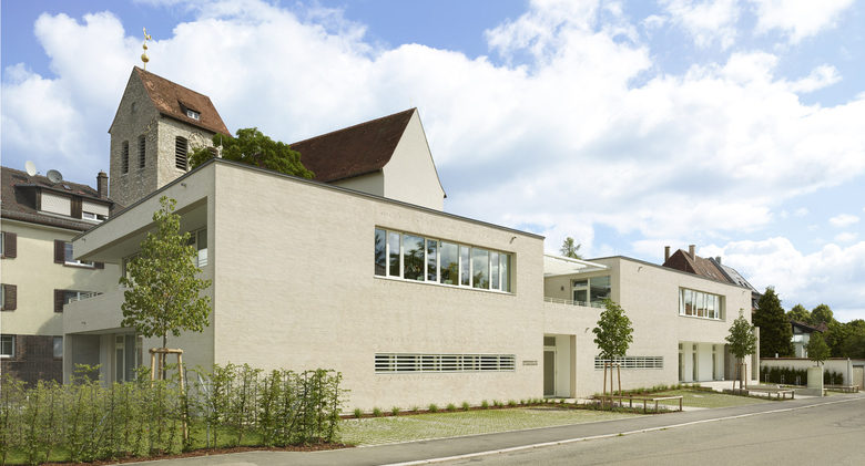 Abbruch eines bestehenden Gemeindehauses sowie Neubau eines Gemeindehauses mit 4-Gruppiger Kindertagesstätte einschließlich Sanierung des Jugendraums im bestehenden Kirchengebäude. Planung der umliegenden Freianlagen einschließlich Umgestaltung des nördlich gelegenen Kirchplatzes.