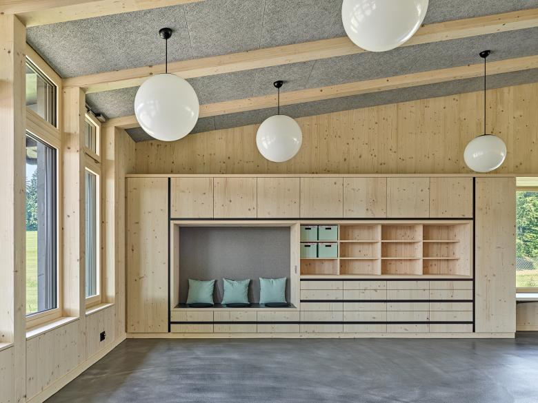 Die klare räumliche Anordnung bietet kurze Wege wie auch eine gute Übersicht im Gebäude für die Kinder und Lehrperso-nen.