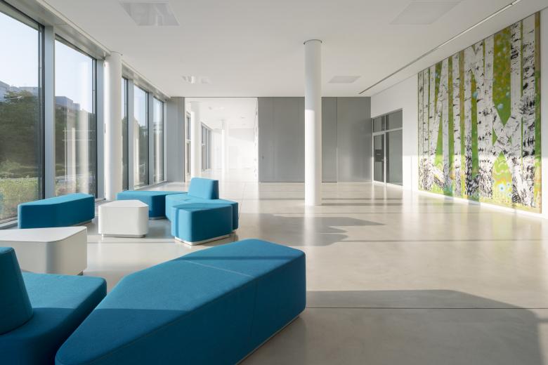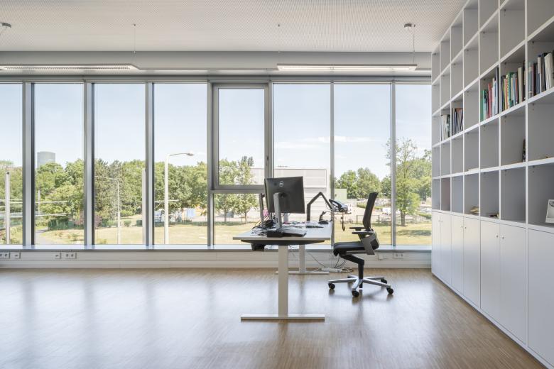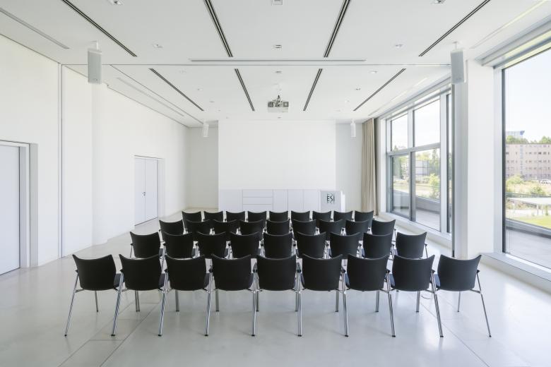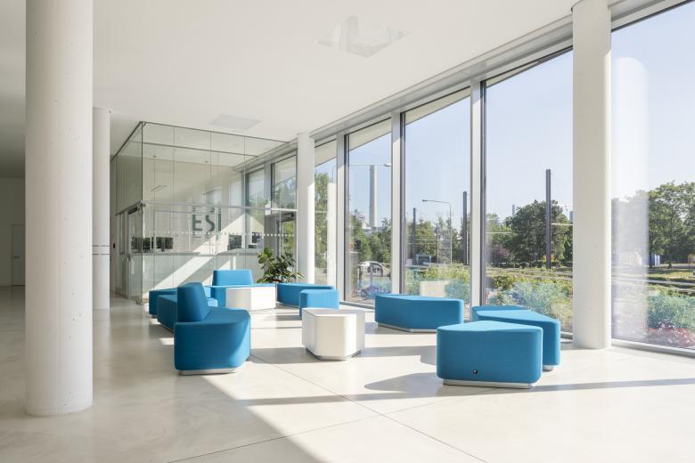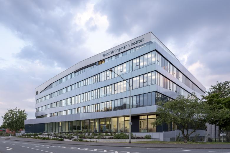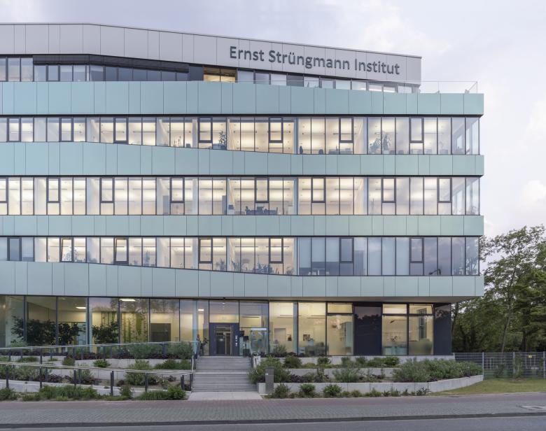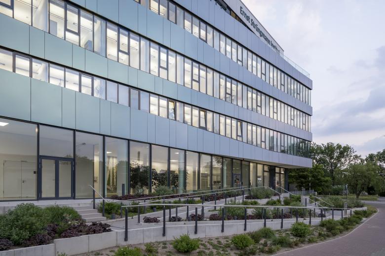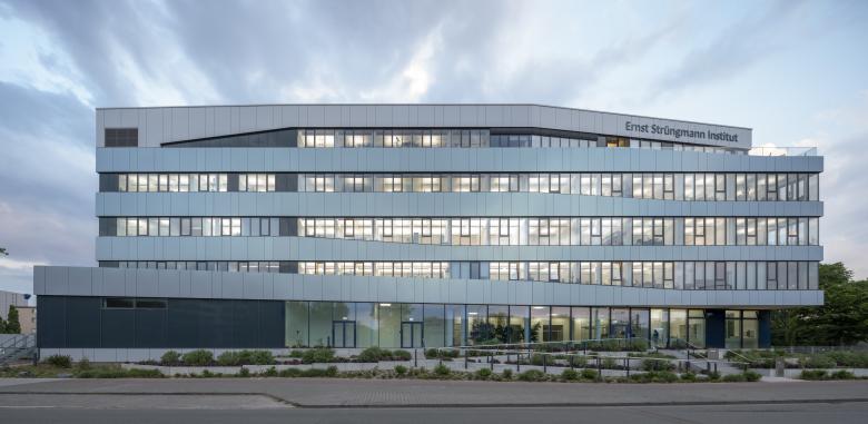 Das Ernst-Strüngmann-Institut (ESI) ist ein rechtlich selbstständiges Institut auf dem Gebiet der Grundlagenforschung mit Sitz in Frankfurt am Main und steht in enger Kooperation mit der Max-Planck-Gesellschaft (MPG). Der 6-geschossige Neubau zeichnet sich durch ein klares, prägnantes und ruhiges Gebäudevolumen aus, welches jedoch durch das Verschwenken des Eingangs- und des Dachgeschosses aus der Flucht der Obergeschosse entlang der Straße eine Differenzierung des Volumens erfährt. Durch dieses Verschieben wird einerseits ein erweiterter Vorbereich zur Straße erzeugt und so der Eingangsbereich betont, andererseits mindert das zurückspringende Dachgeschoss die Gebäudehöhe in Richtung Straßenkreuzung und Main.