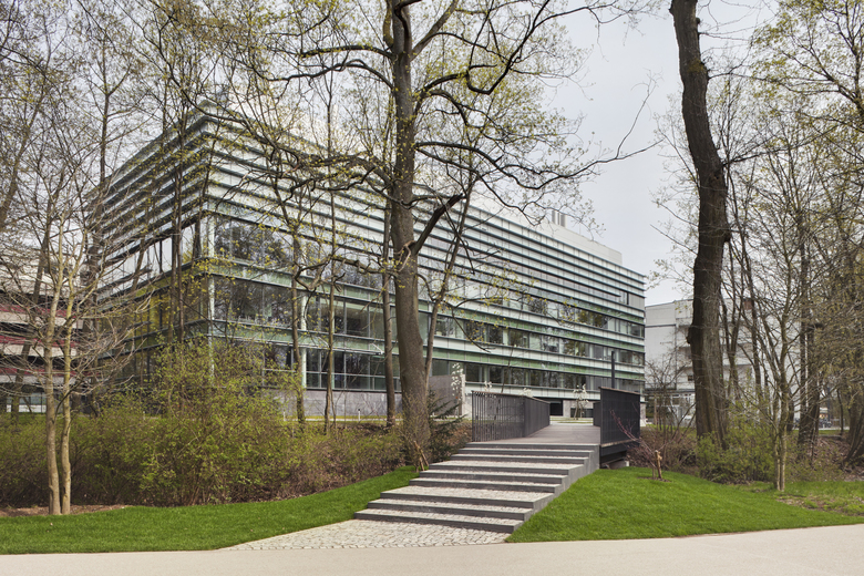 Der Neubau des Instituts ist für 3 experimentelle Forschungsabteilungen mit zusätzlichen Speziallaboratorien und Sonderflächen konzipiert. Das 7-geschossige Gebäude liegt auf einem beengten Grundstück in einer Flussschleife. Der städtebauliche Ansatz und die äußere Gestaltung folgen dem Ziel durch einen prägnanten Baukörper das heterogene Umfeld zu beruhigen und so einen klaren Abschluss des Klinikgeländes zum Kurpark zu bilden. Der Entwurf wurde durch den Leitgedanken geprägt, die imposante Baumkulisse an der Usaschleife in den Innenraum zu holen und so ein - Forschen im Grünen - zu ermöglichen. Deshalb sind alle Auswerte- und Arbeitsplätze sowie die Versammlungsräume direkt an der Fassade nach Süden orientiert. Dadurch bilden die zum Greifen nahen Baumkronen die eigentliche Raumgrenze.