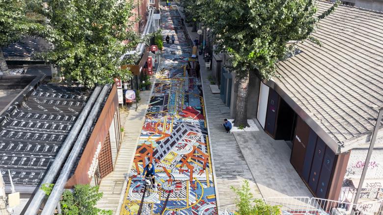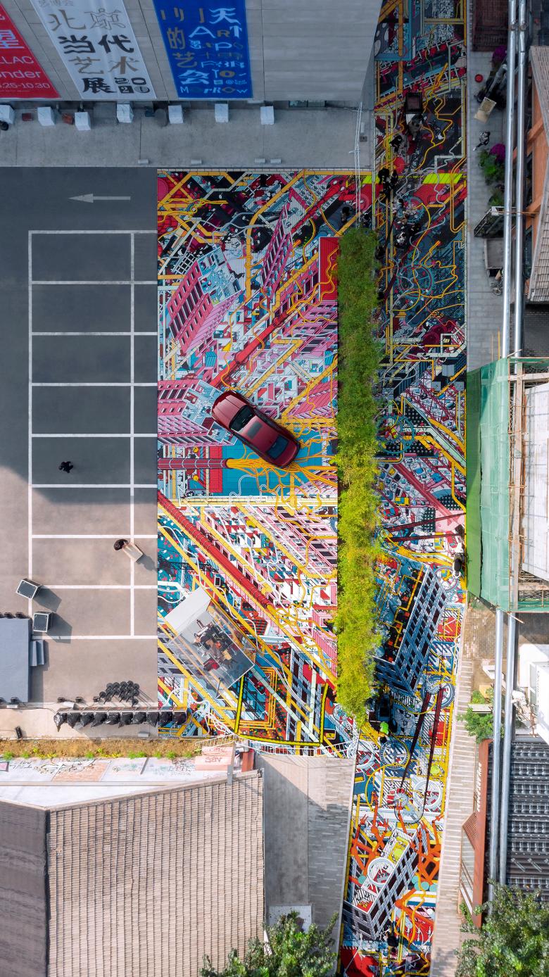 200 metres in length and 5 metres in average width, No Man’s Walk is a piece of public art work DAS created for Beijing Contemporary Art Expo 2020, covering a whole walking street at the 798 Art District.As a reflection on the change of people’s social distancing under the influence of Covid-19, DAS replaced all the human figures in the drawing with animals, plants, and robots, letting them dominate this "No Man’s Walk".