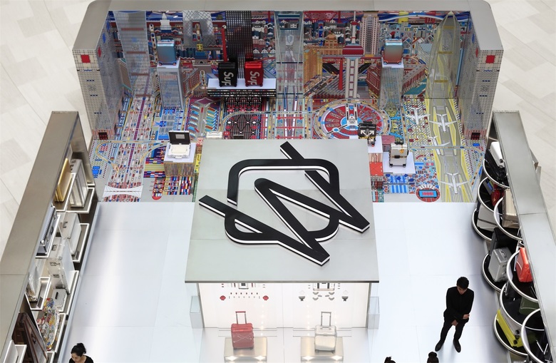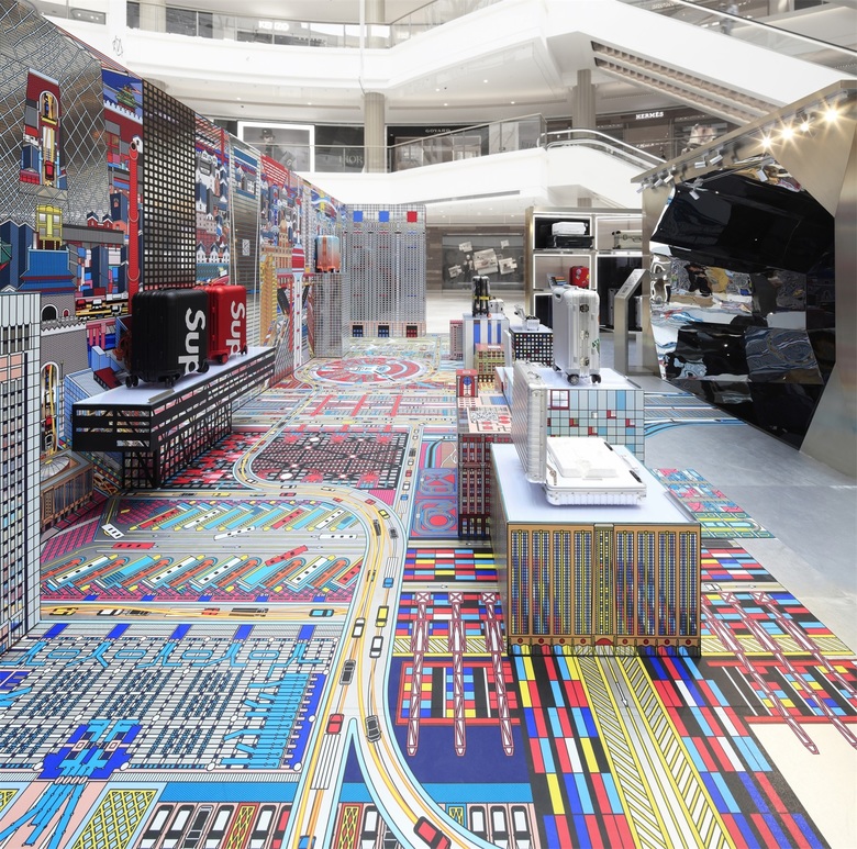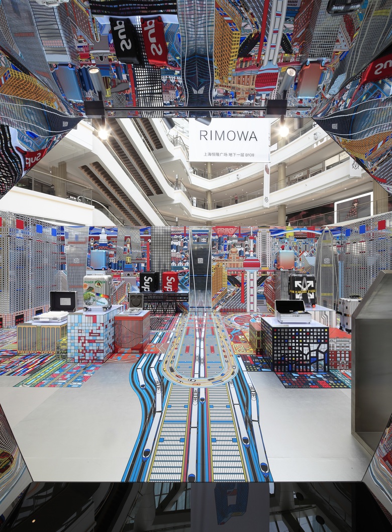 The installation Pack the Suitcase · Unfold the City for the renowned suitcase label RIMOWA for its brand exhibition Beyond the City is another experiment by DAS to integrate architectural drawing with space design.