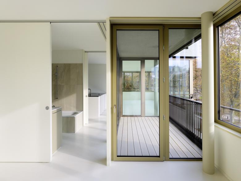 Eine räumliche Antwort auf das sich ständig wandelnde Bewohnerprofil sind die vier «Stöckli»-Zimmer der Dachgeschosse. Diese sind mit der darüber oder darunterliegenden Wohnung verbunden und haben einen separaten Eingang und eine eigene Nasszelle. Das «Stöckli»-System bietet sich sowohl für das Mehrgenerationen-Wohnen als auch für Selbständige, die flexiblen Arbeitsraum benötigen an, ebenso wie für Einwohner, die den Raum für ihre Freizeitaktivitäten nutzen möchten.