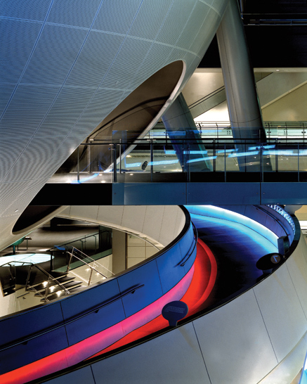 The Rose Center for Earth and Space redefines the identity of this venerable cultural and academic institution for the 21st century while respecting the historic architecture of the designated landmark. Along with the Arthur Ross Terrace, the Weston Pavilion and the renovated Theodore Roosevelt Park, The Rose Center completes the Museum’s north side. The iconic sphere, housed within a glass cube, contains the state-of-the art Hayden Planetarium and “Big Bang” theater, whose program describes the origins of the universe. The building itself is designed as a learning tool, as a visible expression of the science it contains. Its extraordinary curtain wall, structural system and lighting, its use of materials and color, its open planning and single, striking volumetric expression all reveal to the visitor an iconic example of building technology and science that makes this new building a worthy complement to the existing museum and an effective expression of the institution’s scientific and educational mission.