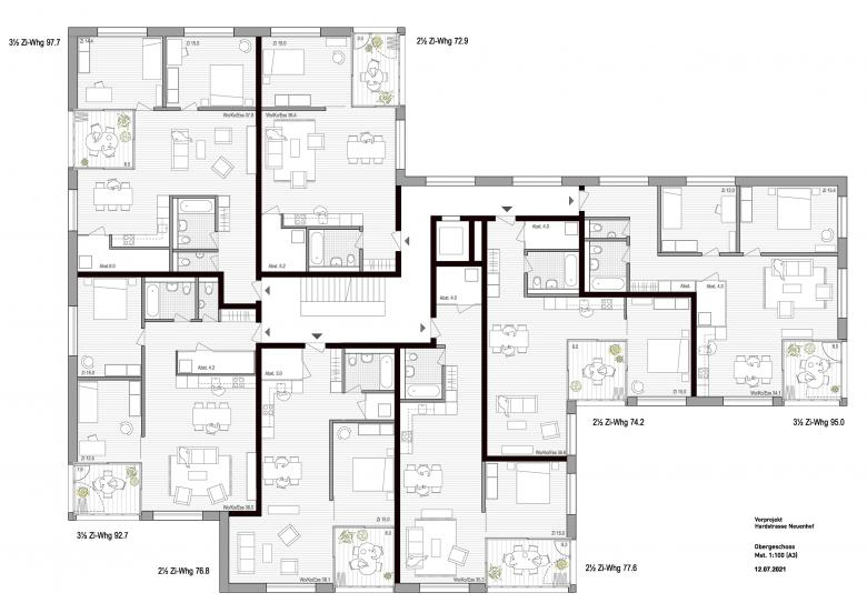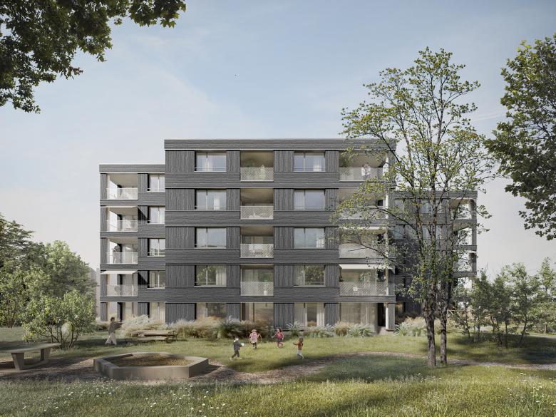Der Neubau liegt in unmittelbarer Nähe zur S-Bahnstation Neuenhof und ergänzt mit 34 2 ½ und 3 ½ Zimmerwohnungen das Angebot der bestehenden Siedlung mit mehrheitlich Familienwohnungen.