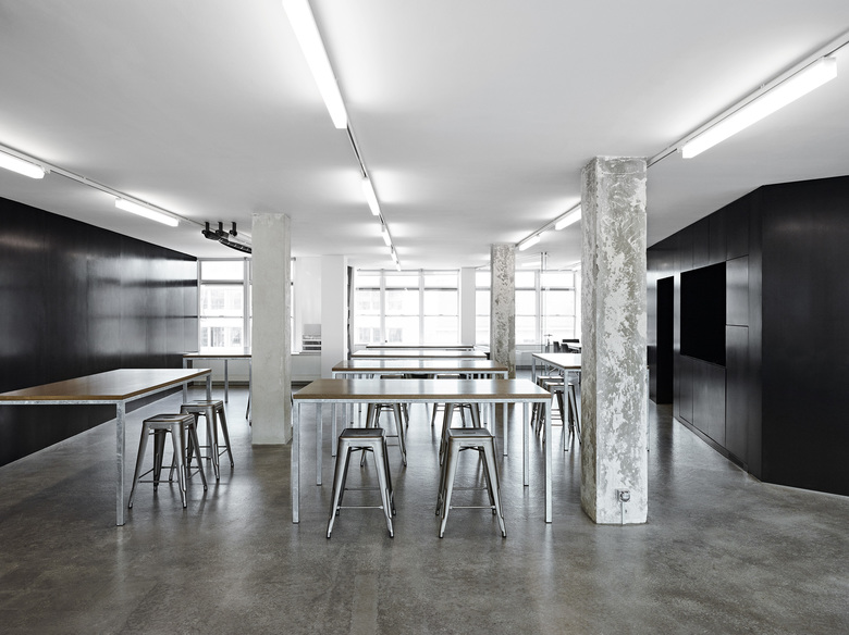 Un espace de travail qui se veut aussi transparent que participatif, organique que fonctionnel. Un bureau qui va, vit et devient atelier, fabrique, lieu d'échanges.