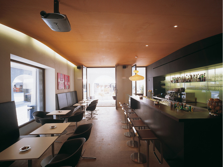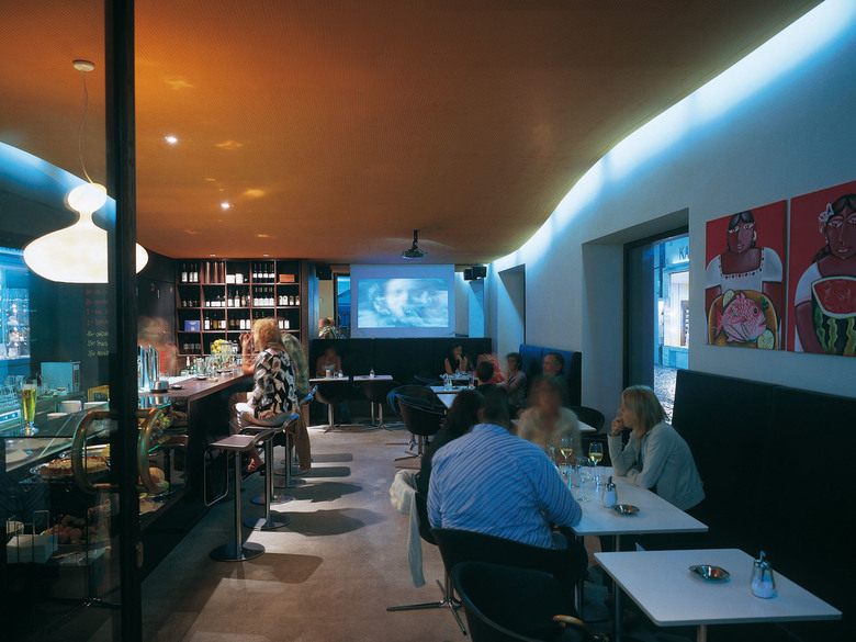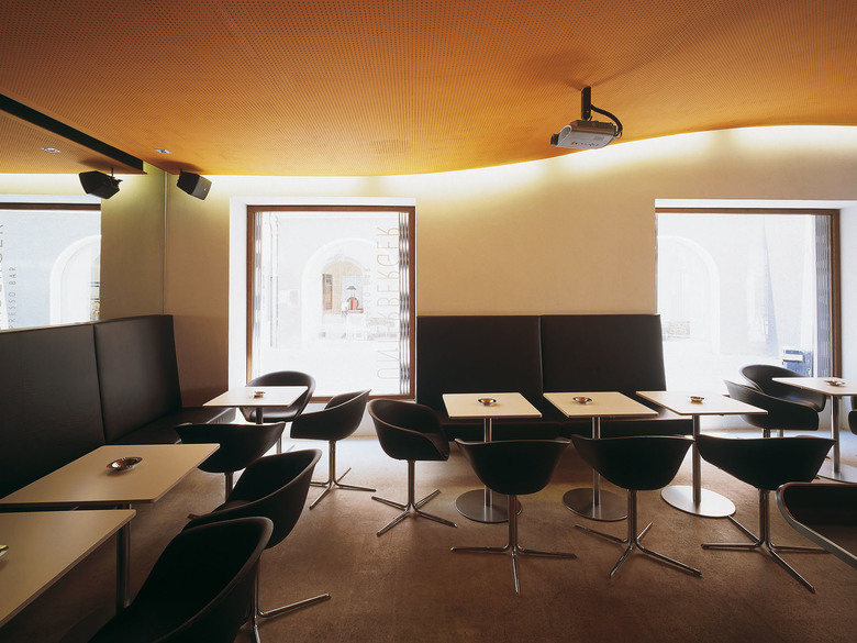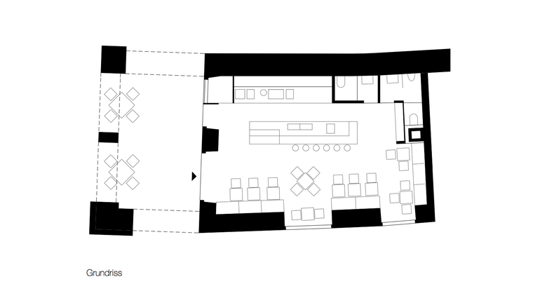 Die EspressoBar Unterberger befindet sich inmitten der Altstadt Feldkirchs in einem Jugendstilhaus aus dem Jahr 1905. Sie versteht sich als öffentlicher Raum im urbanen Gefüge mit großzügigen Öffnungen Richtung Gastgarten bzw. Fußgängerzone. Durch die zentrale Position – in der Mitte des Marktplatzes - entsteht ein Ort lebendiger Durchmischung von Passanten und Gästen. Ein schneller Kaffee im Stehen oder Beobachten und Verweilen, die Grenze zwischen innen und außen wird aufgehoben. Verstärkt wird dieser Eindruck durch den erneuerten Boden, einen geschliffenen Estrich natur, der sich mit seinen Gebrauchsspuren dem Außenraum annähert. In den tiefen Raum hinein führt neben der langgestreckten Bar aus schwarzem Stahl der sanfte Schwung der curryfarbenen Decke, der in einem breiten Spiegel am Raumende fortgesetzt wird. Die Farbwahl im Inneren harmoniert mit den Kaffeebohnen, die in den Scheibenzwischenraum der Fassadengläser gefüllt wurden: Die Wände sind mit schwarzem Schultafellack beschichtet oder der Putz ecru gestrichen, die Einbaumöbel aus Wenge, die lederbezogenen Sitzbänke abgestimmt auf das Braun der Kunststoffstühle und der Barhocker. Als Metapher zum Tischtuch sind die Tische weiß und vermitteln gemeinsam mit der amorphen Leuchte über der Bar eine elegante Atmosphäre. Ausgestattet mit Video-Beamer und Leinwand kann der Raum auch für Präsentationen genutzt werden.