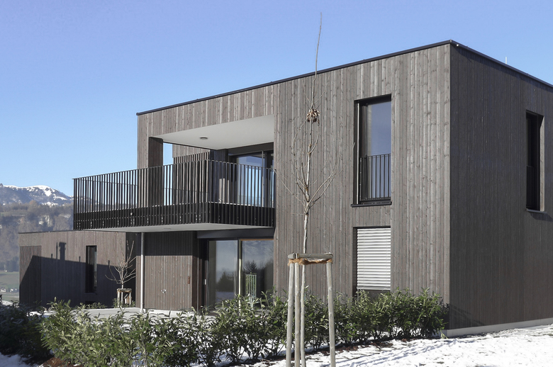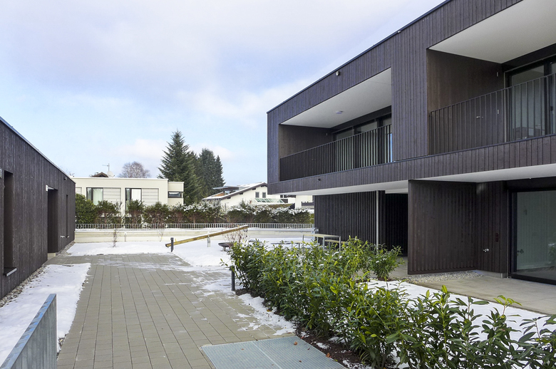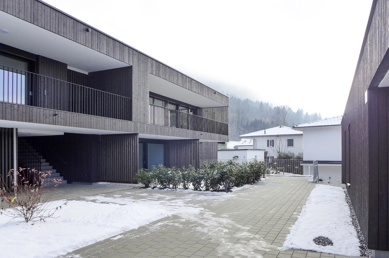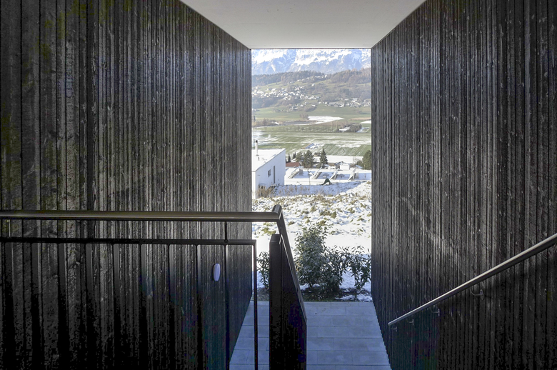 An der Weggabelung Rappenwaldstraße – Fangsweg entsteht ein kleines Wohnquartier mit 8 Wohneinheiten. Verdichtung und Präsenz im Straßenraum verleihen dem Ort eine besondere Identität im gewachsenen Umfeld, ohne dabei die vorhandene Maßstäblichkeit zu brechen. Zwei versetzte zweigeschoßige Baukörper fassen einen halböffentlichen Wohnhof, der über einen Durchgang von der Rappenwaldstraße aus erschlossen ist. Die Ausrichtung der beiden geschoßversetzten Baukörper nimmt Bezug auf Topographie und Aussicht und nutzt so vorhandene Qualitäten des Ortes. Die Parkierung erfolgt unterirdisch in einem Sockelgeschoß, darüber befindet sich der gemeinsam nutzbare Innenhof der Wohnanlage.