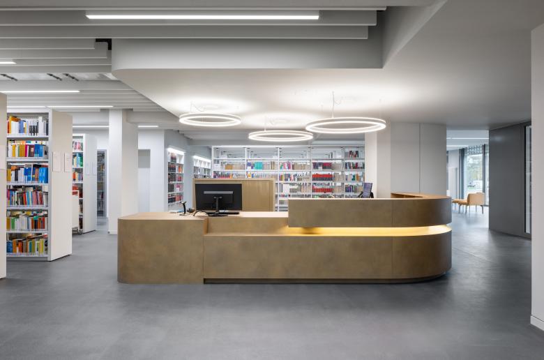 Die bestehenden Bibliotheksflächen verschmelzen mit dem Erweiterungsbau zu einer funktionalen und gestalterischen Nutzungseinheit.