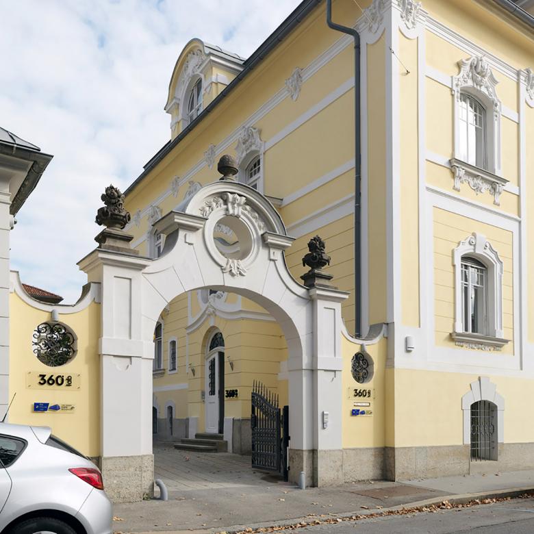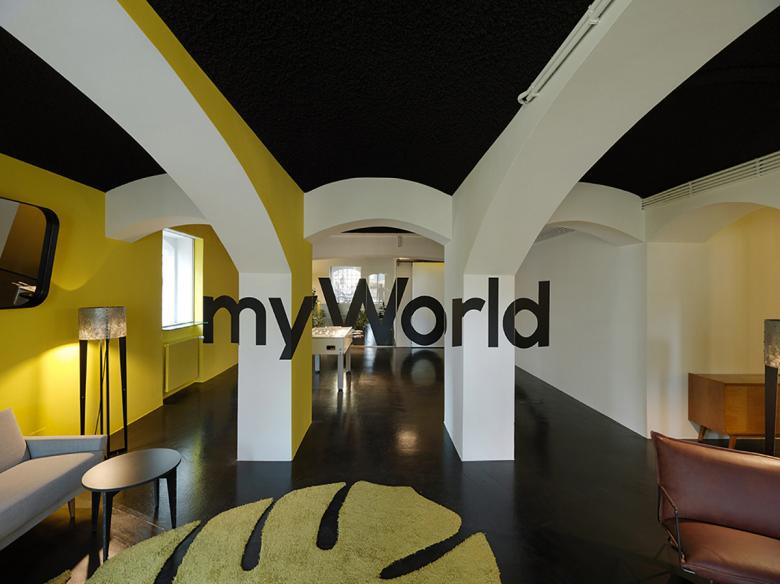 Kommunikationszonen, kollaborative und Einzelarbeitsplätze, Besprechungsräume sowie Lounges erstrecken sich über vier Etagen eines historischen Gebäudes in Graz. Das dynamische Zusammenspiel zwischen Bestandsgebäude und neuen Bauelementen schafft ein kreatives Umfeld, welches Design Thinking und Produktentwicklung begünstigt.