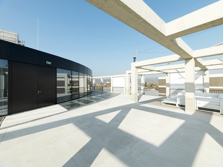 Das neue C&P Headquarter in Graz ist der Inbegriff einer Build Identity, die im Kontext eines siebenstöckigen Gebäudes durch die konsequente Einbindung von Unternehmenslogo und -werten in Grundriss und Form, abgeleitet ist.