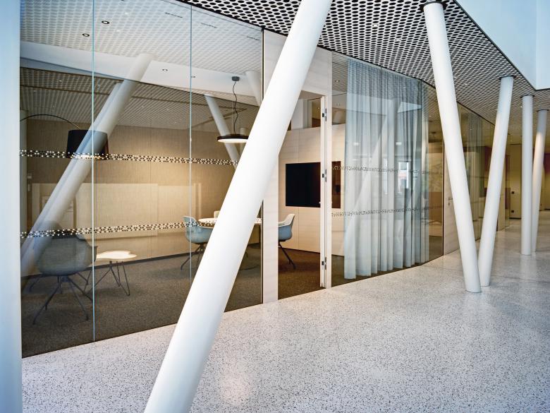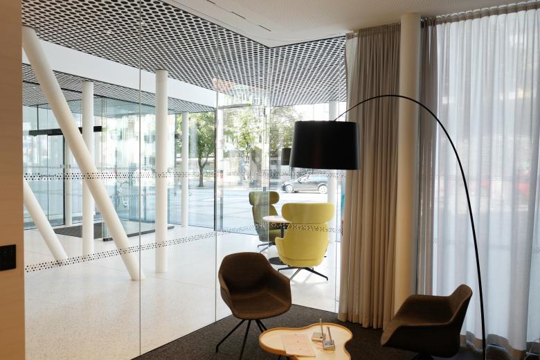 Der Entwurf der neuen HYPO Tirol Bank Geschäftsstelle überführt das postmoderne Gebäude in ein zeitgenössisches Erscheinungsbild und transportiert die wesentlichen unternehmensphilosophischen Grundsätze der HYPO Tirol Bank wie Transparenz, Klarheit und Offenheit. Die offene Raumgestaltung der prototypischen Geschäftsstelle orientiert sich am Konzept dynamischer Arbeitswelten und einem von uns mitentwickelten kundenorientierten Leitsystem.