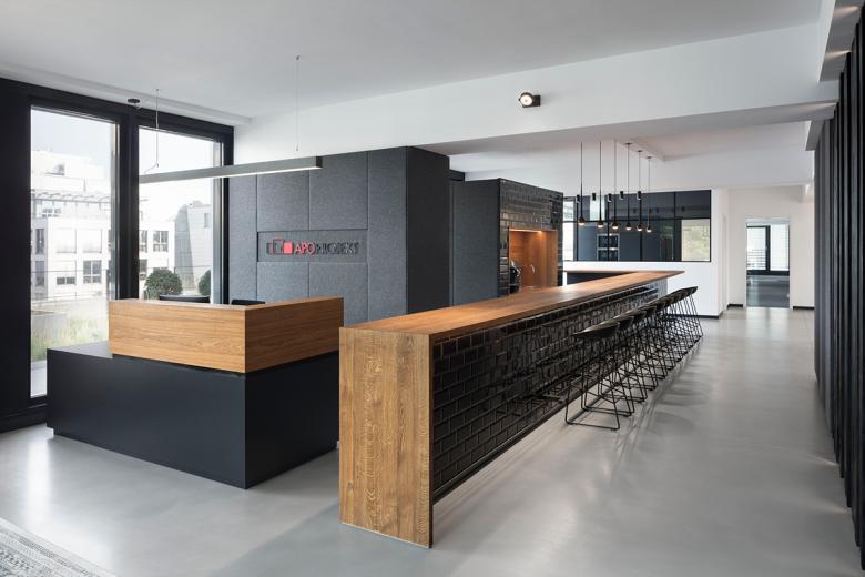 Gegründet 2007 als zwei-Mann-Unternehmen, beschäftigt APOprojekt mittlerweile 320 Mitarbeiter an sechs Standorten in Deutschland. Die Niederlassung in Düsseldorf bezog 2017 im Three George von Hadi Teherani Architects neue Räumlichkeiten, die mit unserem maßgeschneiderten Innenarchitekturkonzept den Charakter des Unternehmens widerspiegeln.