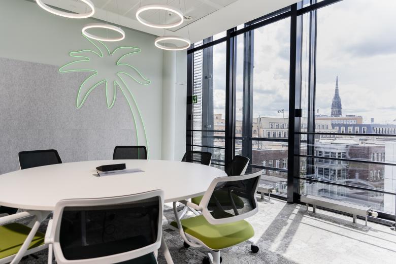 Entsprechend der neuen Anforderungen und der Microsoft Guideline wurde das innenarchitektonische Konzept erstellt (Definition von Besprechungs- und Kommunikationsräumen, vollen Arbeitsplätzen, Workpoints, Rückzugsorte…).