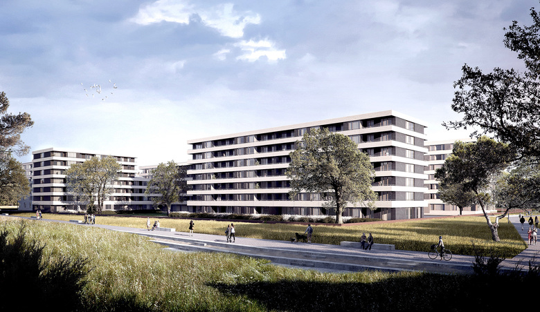 Faisant partie intégrante de la première pièce urbaine du grand projet genevois des Communaux d’Ambilly ce projet pour 165 logements est l’un des 4 bâtiments du projet urbain planifié par l’atelier Bonnet et réalisé conjointement par les bureaux Bassicarella, l’Atelier Bonnet, Jaccaudspicher, ainsi que LRS. De morphologie hybride cette barre articulée en plan et coupe développe des typologies traversantes. Ainsi une généreuse pièce d'entrée au centre du plan distribue la cuisine et le salon créant une séquence spatiale généreuse et dégageant une vue diagonale au travers de l'appartement.