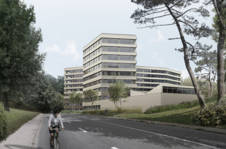 Compact et articulé, le nouveau siège du fonds mondial émerge entre les arbres et signe la structure paysagère et urbaine de la route de Ferney. De par sa forme, le projet s'émancipe du tracé routier renforçant ainsi son appartenance au Jardin des Nations, dont il devient un emblème représentatif. La géométrie du volume génère une perception par facette dévoilée graduellement aux passants et brouille ainsi l'échelle du volume construit. La configuration générale du bâtiment se compose de 3 ailes connectées au centre par une zone de circulation et de service. Au rez-inférieur et supérieur, l’ensemble des fonctions semi-publiques et représentatives tels que l’entrée, les salles de séminaires, l’auditoire, la cafétéria ainsi que la bibliothèque, se déploient autour d’un parcours largement ouvert sur les différents paysages du contexte. Les 7 niveaux supérieurs regroupent les bureaux répartis sur les 3 ailes au gré des besoins et des structures organisationnelles.
