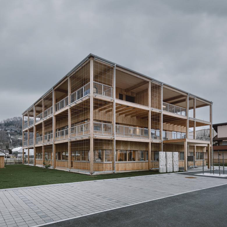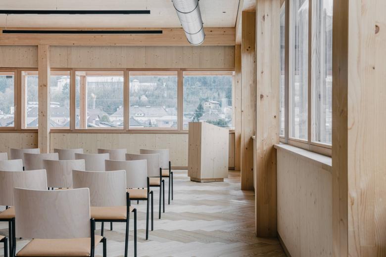 Das neue Gebäude der Landwirtschaftskammer fügt sich in das heterogene städtische Umfeld Halleins selbstbewusst ein. Der in Holzbauweise konstruierte Solitär mit begrünter Fassade, steht nicht nur im Einklang mit den Merkmalen der bäuerlichen Interessenvertretung, sondern generiert daraus seine Identität und behauptet sich so im urbanen Umfeld. Darüber hinaus steht die Gestaltung des Gebäudes für zukunftsorientierte Werte im Bauen.