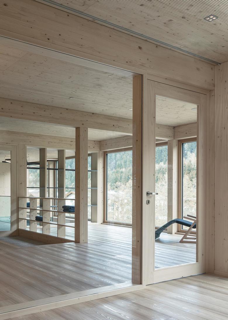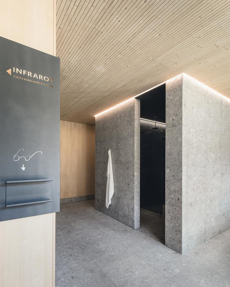 Die bestehenden Räumlichkeiten der Freizeitanlage des Tauernhofs aus den 90er Jahren erhielten ein neues Raumkonzept. Neu geplant und errichtet wurden Hallenbad, Sport- und Wellnessbereich inkl. Saunen, Sanitärräume sowie eine großzügige Dachterrasse mit Außenpool. Der aufgesetzte neue Baukörper ist von den Außenkanten des bestehenden Gebäudes abgerückt und bietet daher wenig Einblicke dafür entspannte, ruhige Ausblicke.