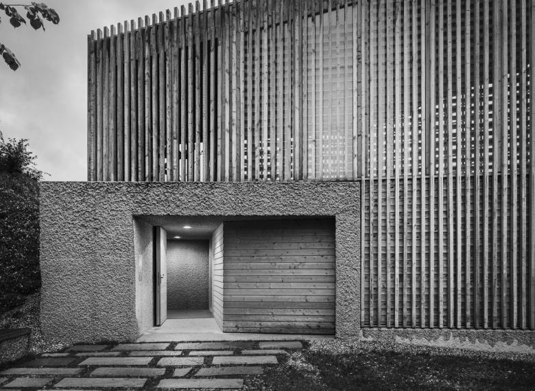 Die, in der Verlängerung einer alten Schottergrube situierte Auferstehungskapelle definiert durch seine Lage einen neuen Ort der Begegnung für Straß. Eine, dem Hang entgegengestellte, Betonklammer bildet den markanten Abschluss der örtlichen Topografie und definiert die Adresse der Kapelle. Über einen leger ausformulierten Vorplatz wird man durch einen gedeckten Zugang in den Vorraum geleitet, von wo aus man am Ende umgelenkt und von rückwärts in den offenen, noch oben strebenden Kapellenraum geleitet wird.