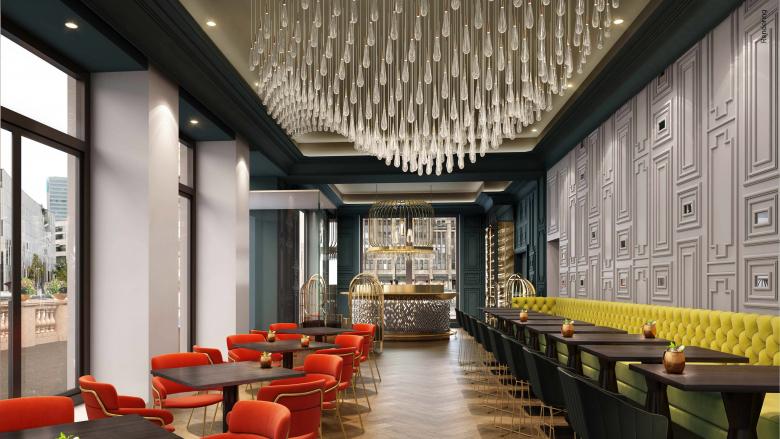 Der Entwurf für die Champagnerbar im Düsseldorfer 5 Sterne „Steigenberger Parkhotel“ verbindet die vorhandenen klassischen Elemente mit modernen Features. Das Farbkonzept setzt Akzente in polarisierenden Farben. Das „impressive lighting“ Konzept simuliert einen Sternenregen.