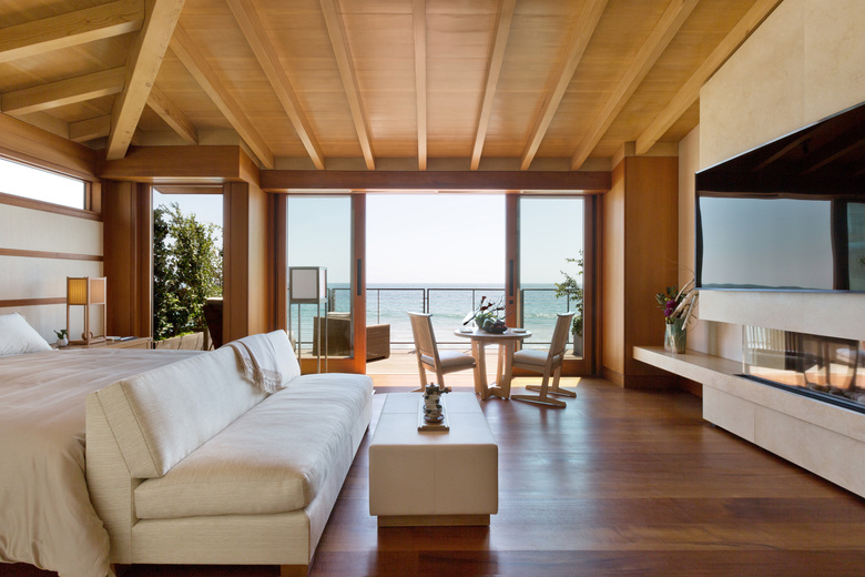 Located along the Pacific Coast Highway in Malibu, California, Nobu Ryokan is a completely renovated 1950s-era beach motel that combines the minimalist aesthetic of traditional Japanese inns with the cool elegance of the California coastline. A simple, veiled entrance opens onto an ocean-facing courtyard. around which the bungalows face. The different buildings are brought together with a unified palette, which flows seamlessly from outdoors to indoors: exterior limestone pavers become inlays in the reception area’s teak flooring, then turn vertically up the walls at the sculptural main entry stair and fireplace surround; built-in teak millwork in each of the 16 guestrooms suggests the lattice-like exposed cedar rafter ceiling; large wood and glazed doors and skylights bring natural light deep into the interiors of the suites. Integrated landscape elements push and pull against the building facade to create pocket gardens, while dramatic eaves and sliding wooden screens at the balconies and lower level courtyards provide shade and privacy for guests.