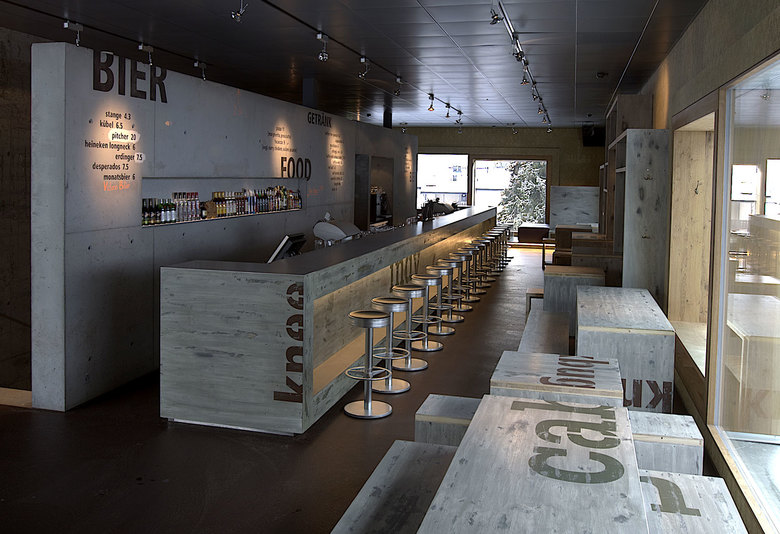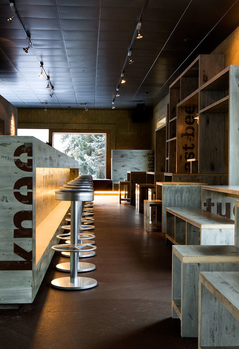 Konzept, Raum- und Möbeldesign für eine Bar & Club im Rocksresort in Laax.