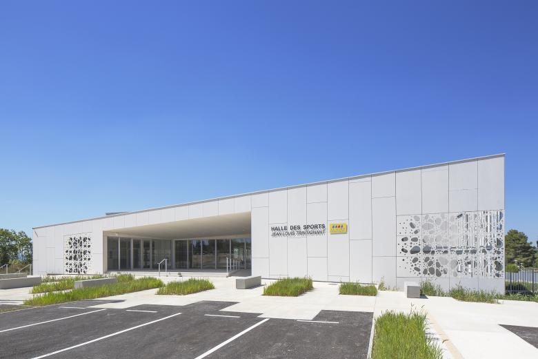 L’enjeu de la construction de la halle des sports Jean-Louis Trintignant à Uzès est de proposer un projet qui puisse fonctionner parfaitement avec les éléments présents sur le site tout en créant les meilleures conditions pour la pratique des sports. Un soin particulier a été apporté à la fonctionnalité intérieure tant dans la maîtrise de la lumière que dans le confort des joueurs et des spectateurs.