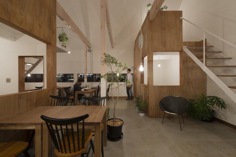 その間を縫うように小屋のようなスペースを3ヶ所設け、その上には2階席がああり、お客様は行く度に新鮮な景色を楽しめることとなる。