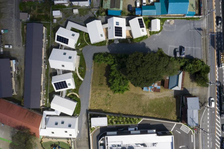 そこで、今後の予測しきれない変化に対し、建築物として誰しも直感的に感じる家型を基本形としてながらも、大きさ・高さ・屋根の角度を揃えず、かつ配置の角度も揃えないことによって、今後の不揃いの変化を吸収できるのではないかと考えた。つまり、バラバラがバラバラを吸収する。という受け入れ方。