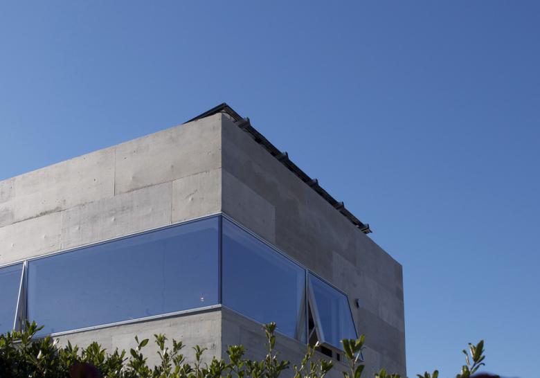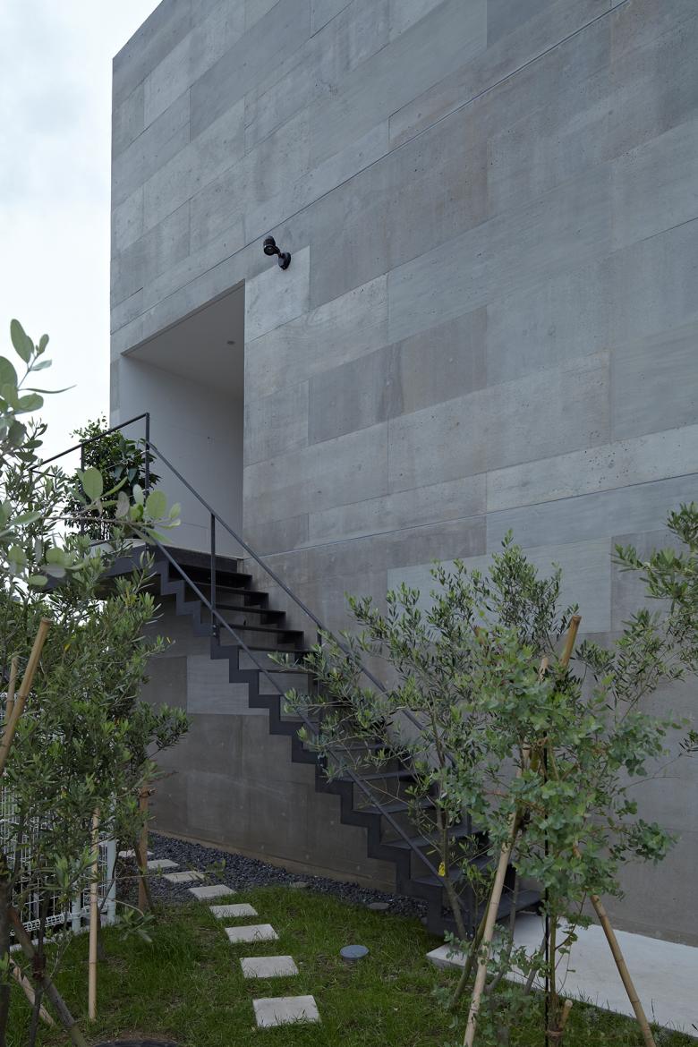 そして、周囲の良好な環境に馴染ませる目的で、古くからある山手のBluff Load(石積擁壁)の様子を建物の外壁に抽象的に表現する事を目的とし、一般的には嫌がられるコンクリート型枠からの灰汁を自然発生させ、赤・白・茶・黄とコンクリートに転写し、よりオーガニックな仕上げを施している。