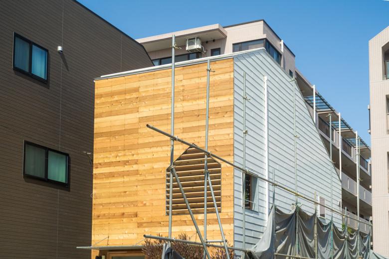 ただ「開放」ではなく「閉じながら開く」という方向性に絞り、外壁面を少し操作することで、解放に転じる方向性を模索することとしている。そこで、採光と通気を得ながら、視線を遮ることができる「ガラリ」という昔ながらの技法。